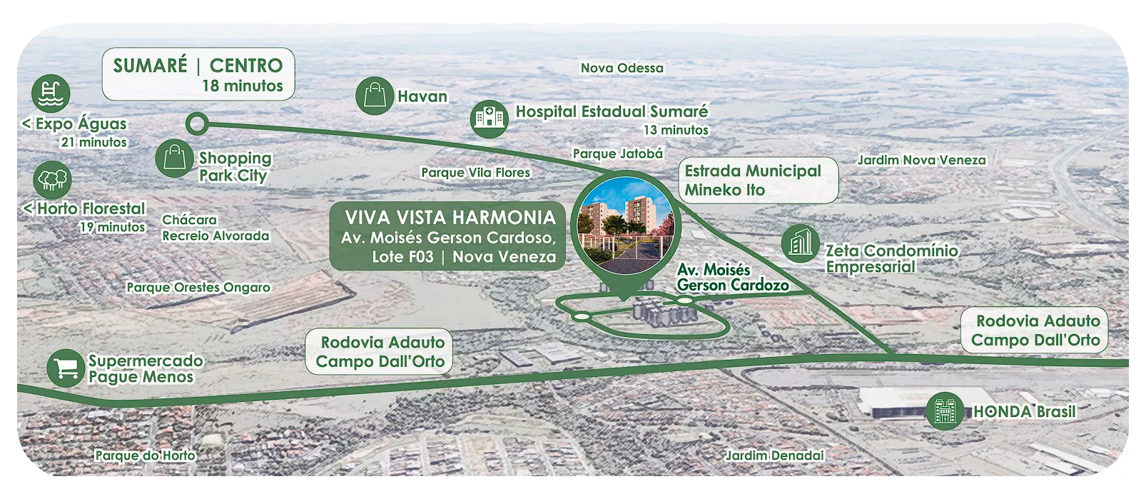 O Viva Vista Harmonia é um lançamento exclusivo em Sumaré, que oferece apartamentos práticos e modernos de 2 ou 3 dormitórios, sendo 1 suíte, com varanda e 1 ou 2 vagas de garagem.