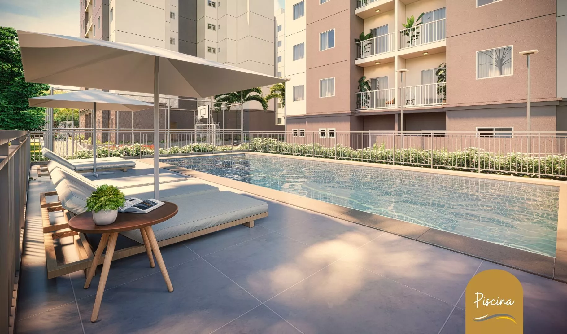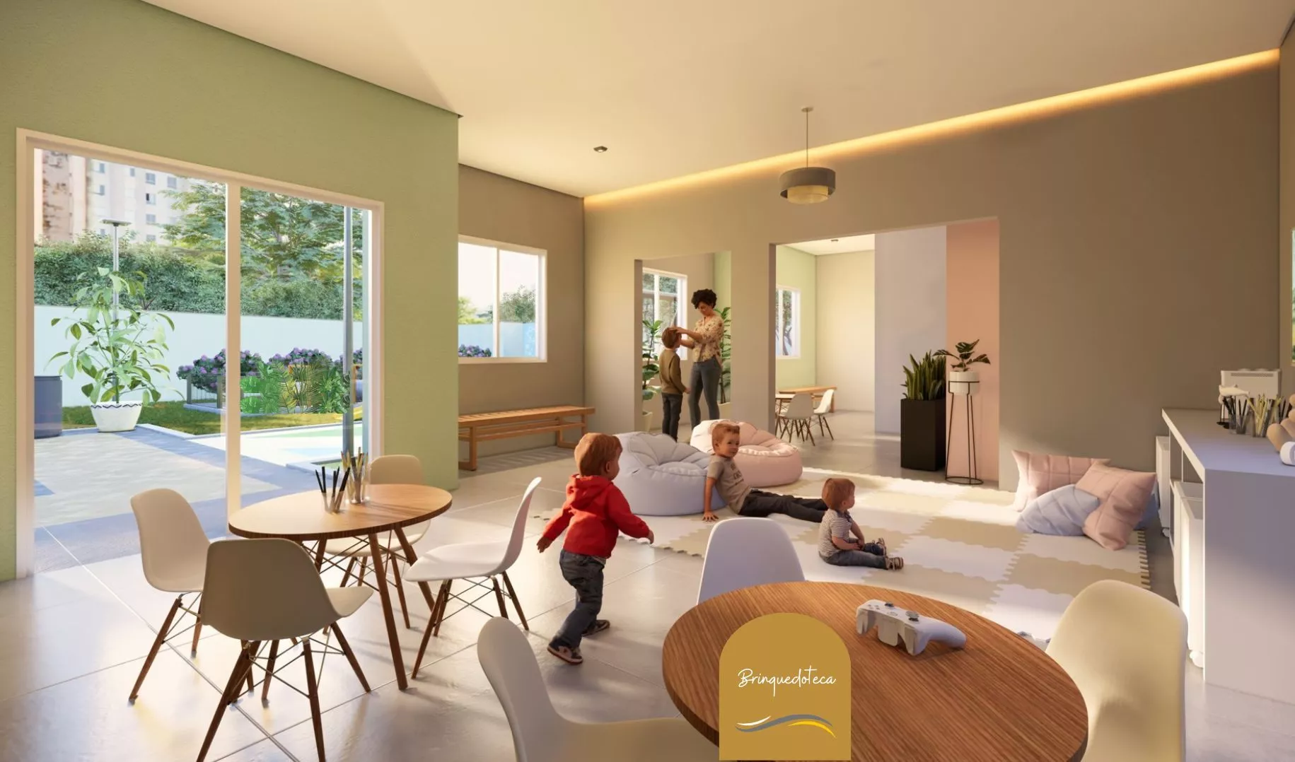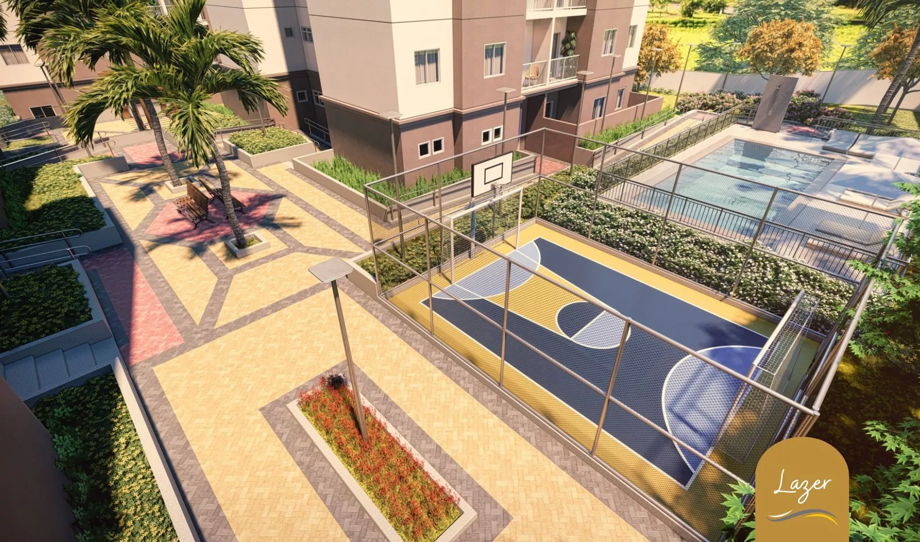 O condomínio contará com infraestrutura completa de lazer e segurança 24 horas, incluindo piscina, playground, brinquedoteca, bicicletário, churrasqueira, salão de festas, salão de jogos e quadra poliesportiva.